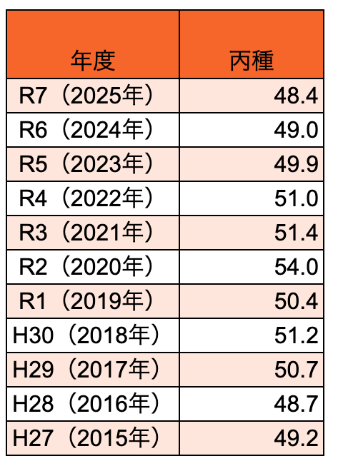 丙種危険物取扱者試験の合格率は50%前後で、受験者の2人に1人が合格しており、難易度はそこまで高くないといえます。