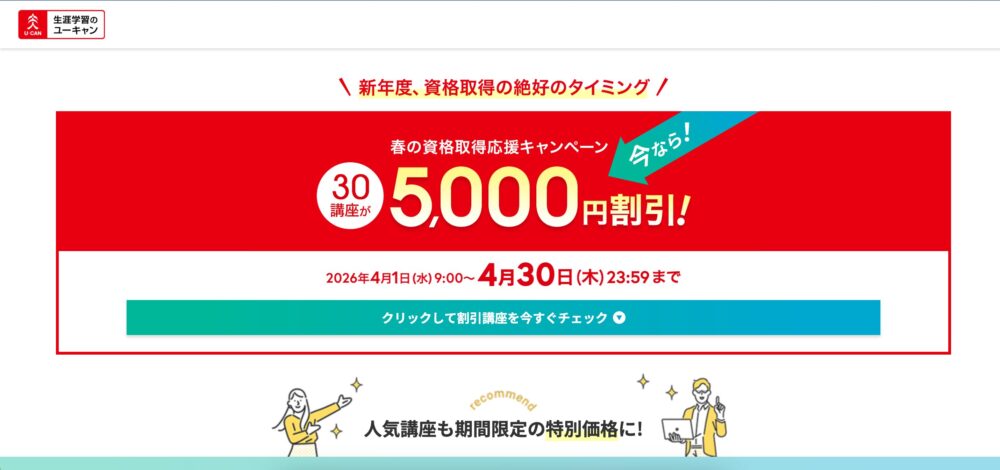 独学勉強が苦手な方、何度か不合格になった方はユーキャン通信講座がおすすめです。手厚いサポートと効率よく勉強できます。